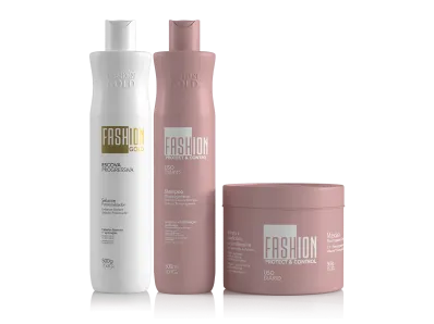 A Fashion Gold é indicada para todos os tipos de cabelos. Sua fórmula exclusiva, proporciona um resultado perfeito que você sempre sonhou. Contém óleo inca e proteína de quinoa, ativos raros que restauram a saúde dos fios, hidratam e deixam seu cabelo com um brilho impecável.